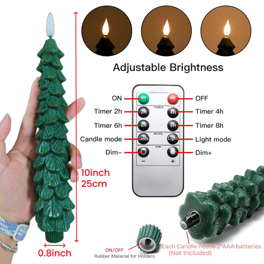 LED Flameless Pine Tree Candles - 3 & 4pcs Set (10in)